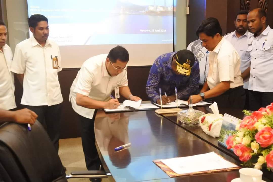 Pimpinan PT PLN Papua bersama Bupati Tolikara melakukan penandatanganan MoU Nota kesepahaman