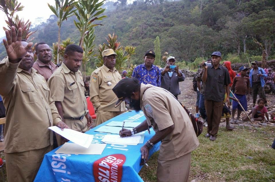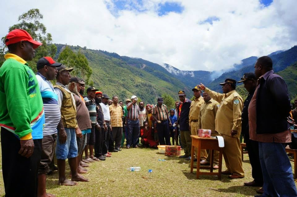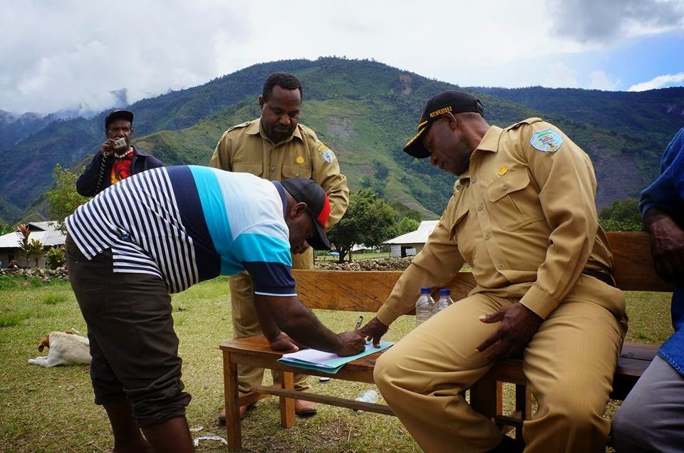 Kepala Bagian Tata Pemerintahan Setda Kabupaten Tolikara Yohanis Rudi Gurik, SIP mewakili Bupati Tolikara, melakukan Pembayaran Tanah adat untuk bangun Rumah Sakit di Kanggime.